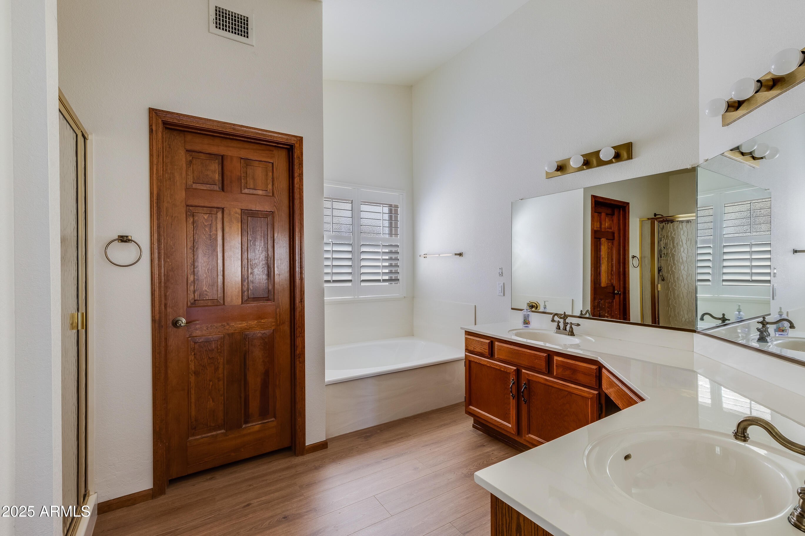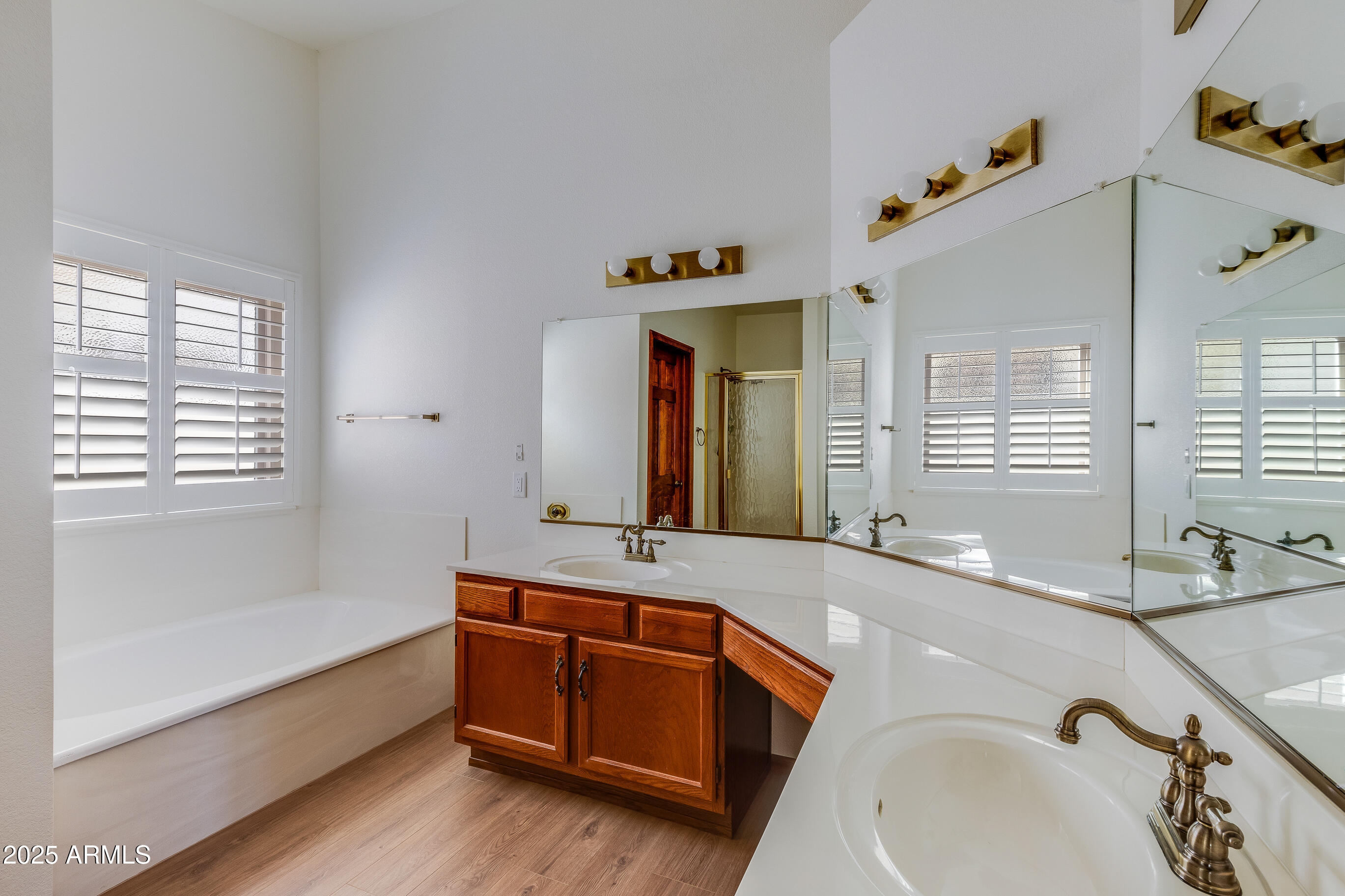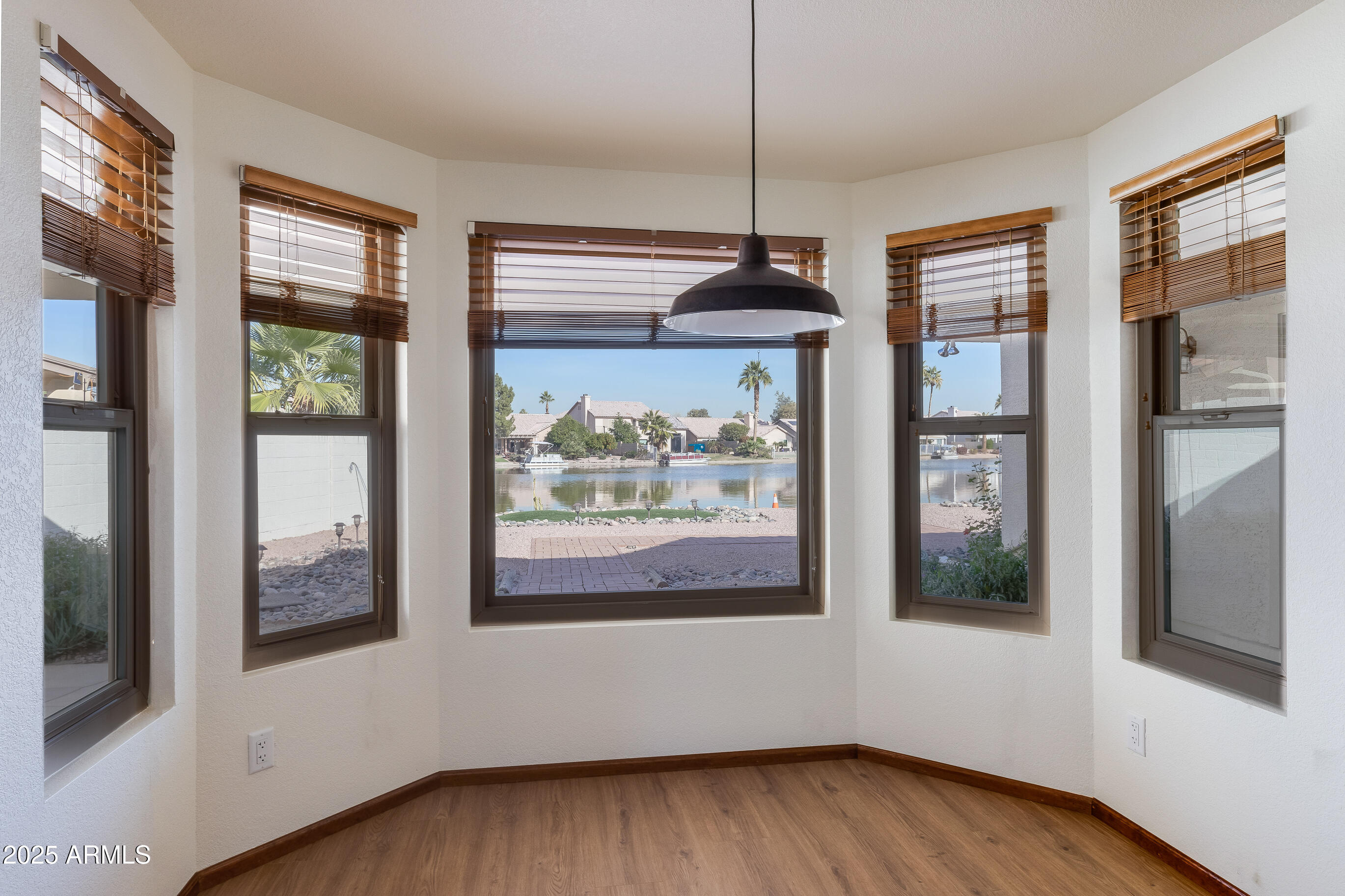 Welcome to lakeside living in desirable Garden Lakes! This 3-bedroom home, with an office/den, offers a thoughtful floor plan featuring formal living and dining rooms, plus a cozy family room off the kitchen with vaulted ceilings throughout. Recent upgrades include stunning wood-style luxury vinyl flooring, a freshly painted interior, brand-new kitchen countertops, range, microwave, and disposal. Enjoy peace of mind with a roof underlayment replaced in 2013. The North-South exposure fills the home with natural light, while the serene lakefront setting provides tranquil views. A spacious 2-car garage completes this must-see property. Don't miss the chance to make it yours!