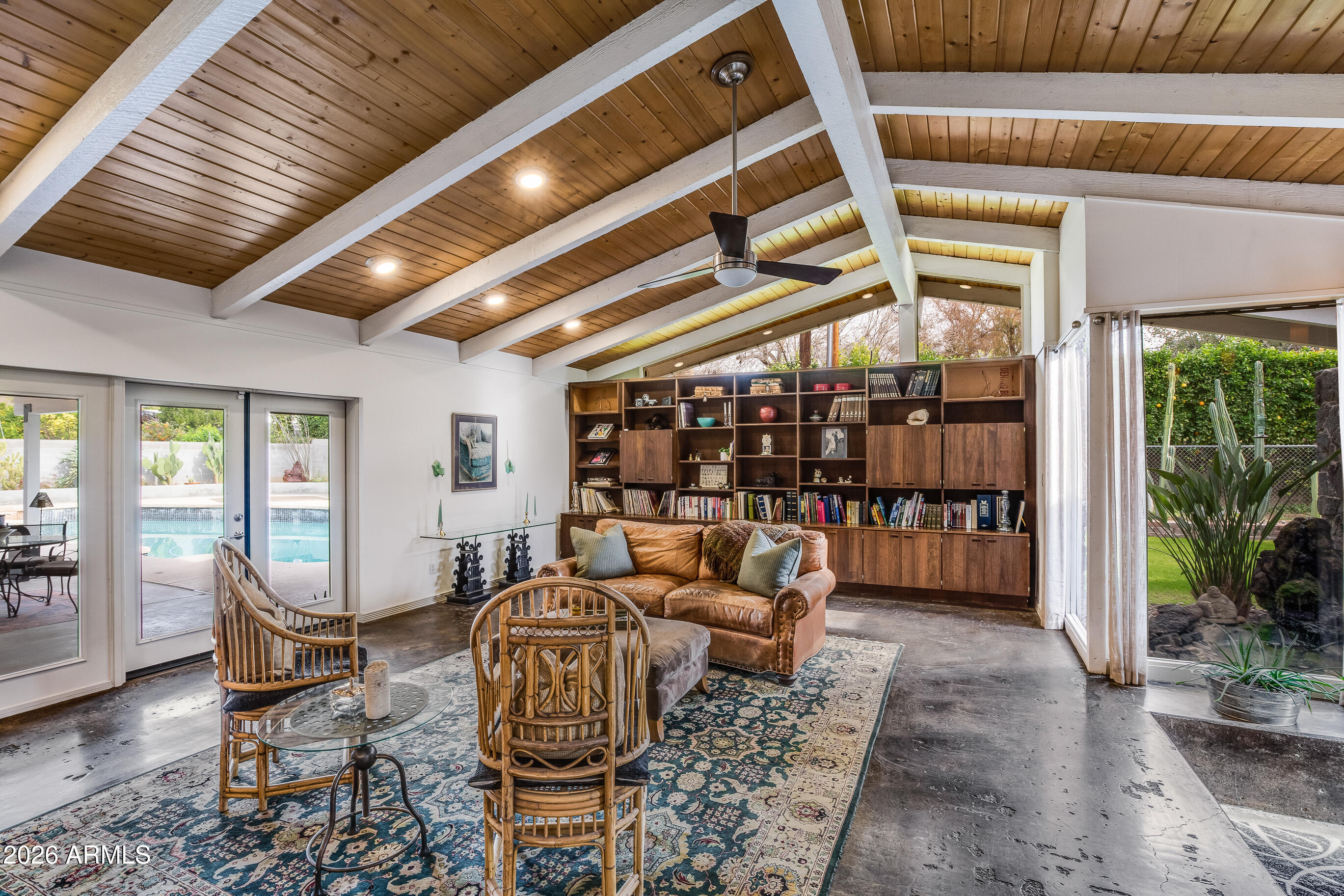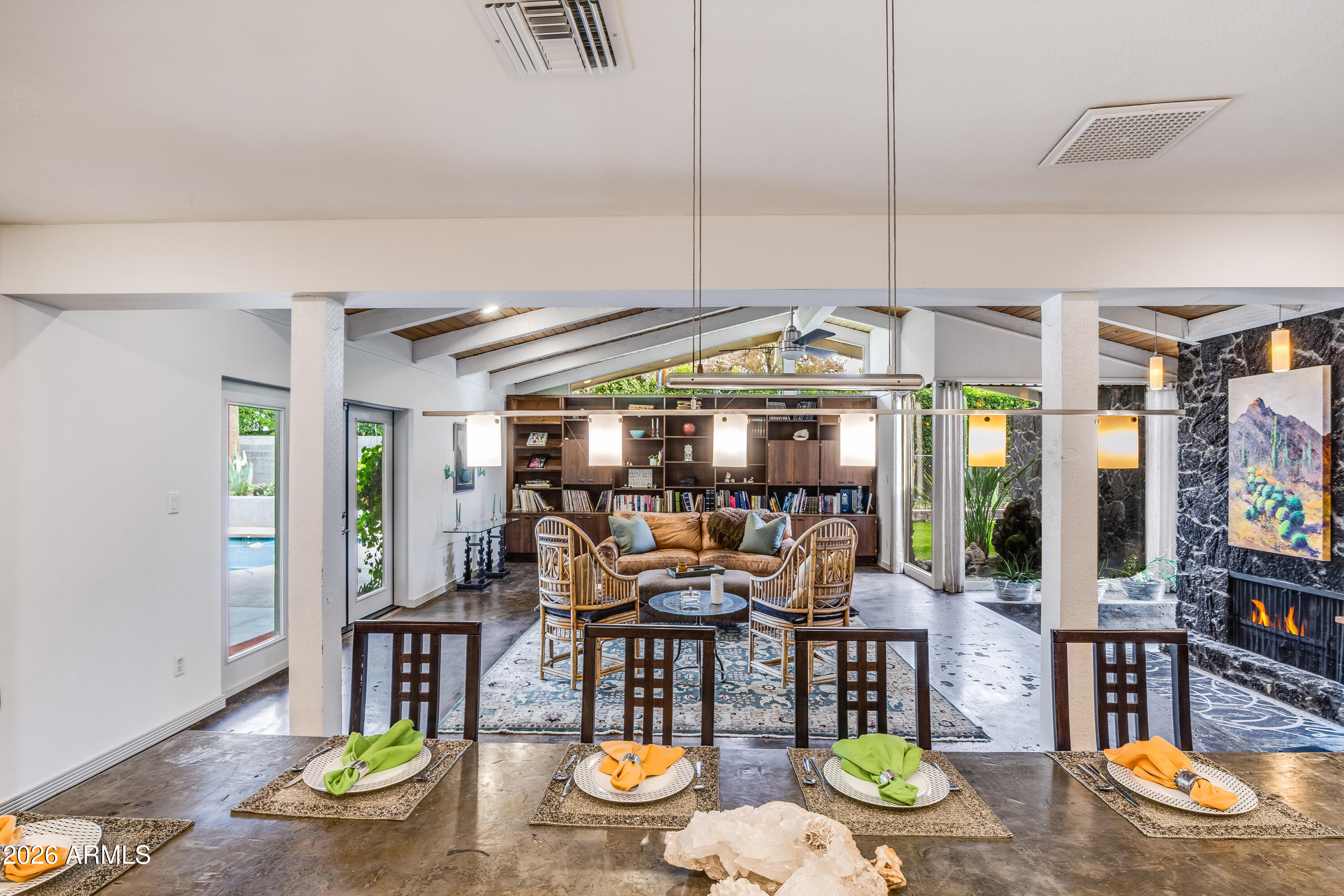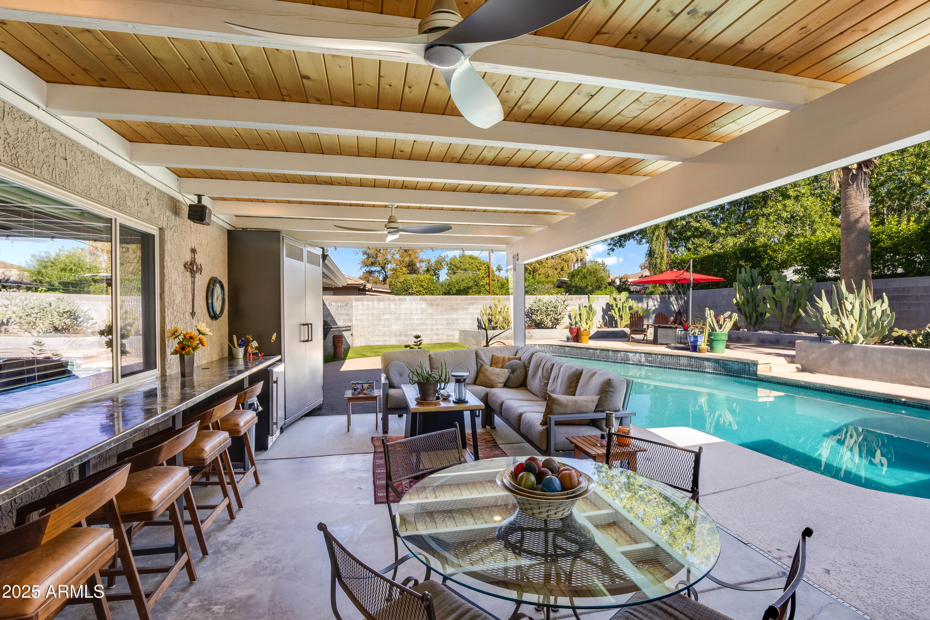 This inviting North Central home sits proudly between the 7's. It has so much to offer --starting with a large front porch perfect for greeting neighbors. Inside, you'll find 4 bedrooms, 3 updated bathrooms, & a gorgeous kitchen with a breakfast nook & island seating that opens seamlessly to the family room. The massive dining & living room showcases a stunning wood-vaulted ceiling & one of the coolest fireplaces you'll ever see. The backyard is an entertainer's dream: an incredible covered porch, custom built-in metal seating bar with cabinetry, a sparkling swimming pool with layout deck, raised garden beds, & a grassy side yard. An RV gate provides space for all your toys. Fabulous neighborhood, great schools, heart of North Central, fantastic floor plan, this one checks a lot of boxes!