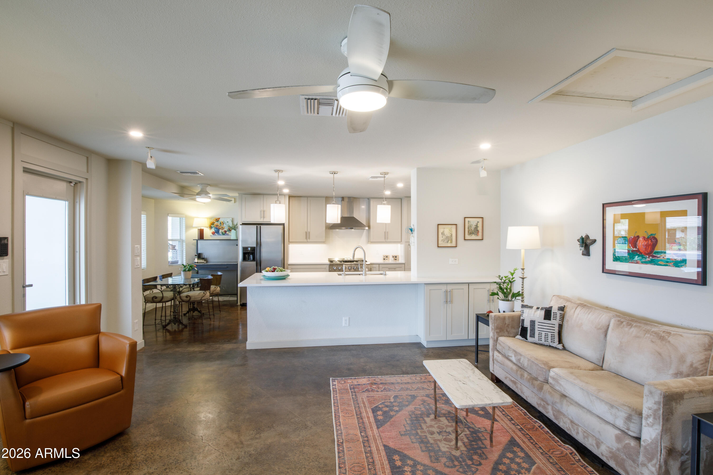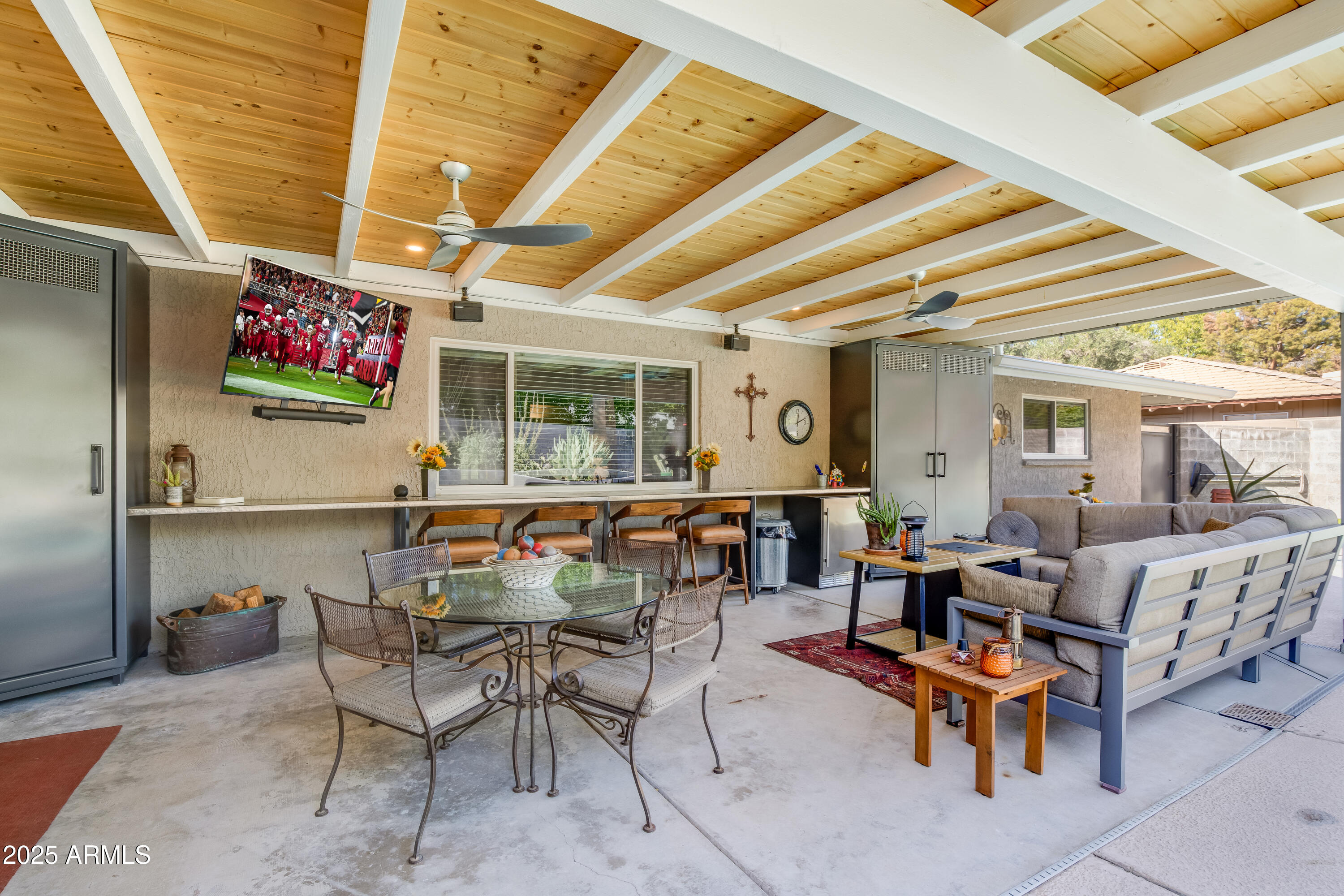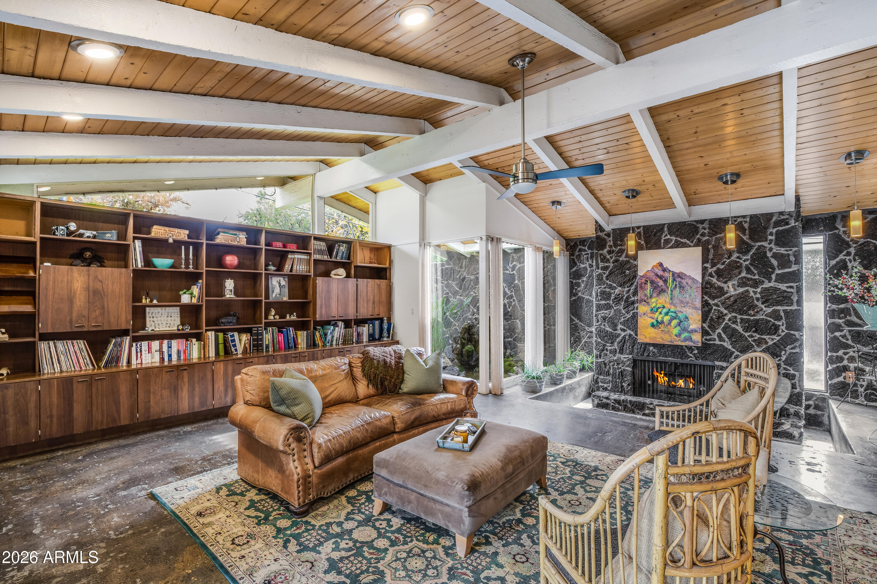 This inviting North Central home sits proudly between the 7's. It has so much to offer --starting with a large front porch perfect for greeting neighbors. Inside, you'll find 4 bedrooms, 3 updated bathrooms, & a gorgeous kitchen with a breakfast nook & island seating that opens seamlessly to the family room. The massive dining & living room showcases a stunning wood-vaulted ceiling & one of the coolest fireplaces you'll ever see. The backyard is an entertainer's dream: an incredible covered porch, custom built-in metal seating bar with cabinetry, a sparkling swimming pool with layout deck, raised garden beds, & a grassy side yard. An RV gate provides space for all your toys. Fabulous neighborhood, great schools, heart of North Central, fantastic floor plan, this one checks a lot of boxes!